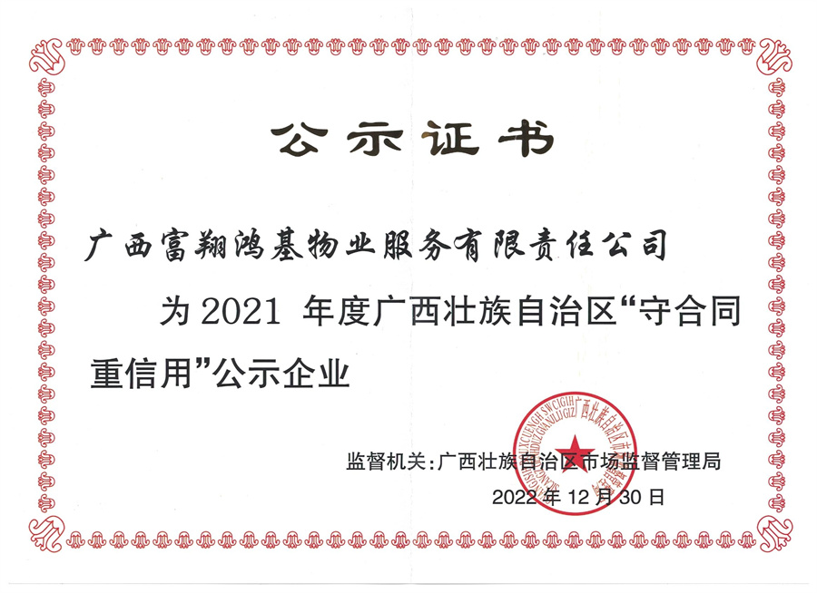 2020年度廣西“守合同重信用“公示企業
