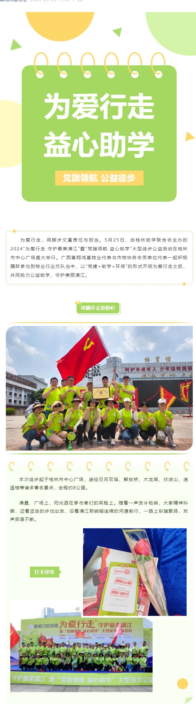 > 廣西富翔鴻基物業參加“黨旗領航 益心助學”徒步公益活動