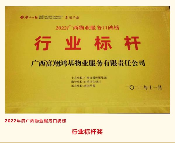 喜報 |富翔鴻基物業榮獲2022廣西物業服務口碑榜行業標桿獎