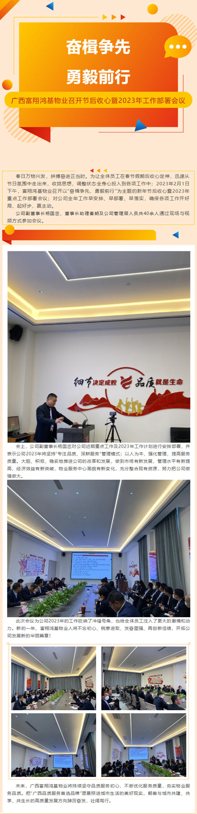 > 奮楫爭先 勇毅前行|廣西富翔鴻基物業召開新年節后收心暨2023年工作部署會議